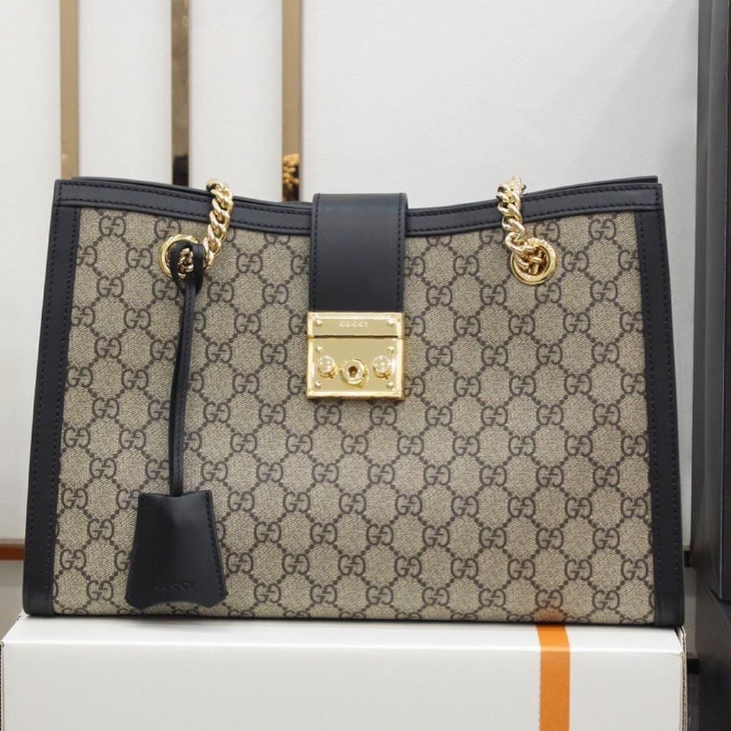 Esta bolsa de ombro estruturada em canvas apresenta fechamento por cadeado com chave inspirado nos arquivos da grife. Aqui, os detalhes em couro preto contrastam com a padronagem GG Supreme. Usado pela primeira vez nos anos 70, o GG foi uma evolução do logo Gucci original da década de 30.