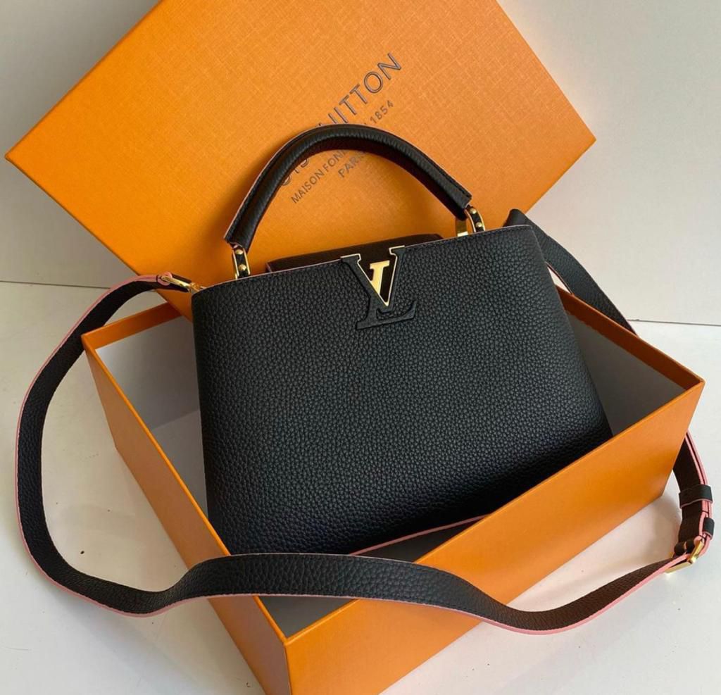 A bolsa Capucines PM leva o nome da rua parisiense onde Louis Vuitton inaugurou sua primeira loja. De couro Taurillon granulado, sua aba pode ser usada para fora, revelando um Monogram Flower, ou para dentro, exibindo as LV Initials revestidas de couro. Leve, pode ser carregada o dia todo na mão, no ombro ou na transversal com a alça removível.